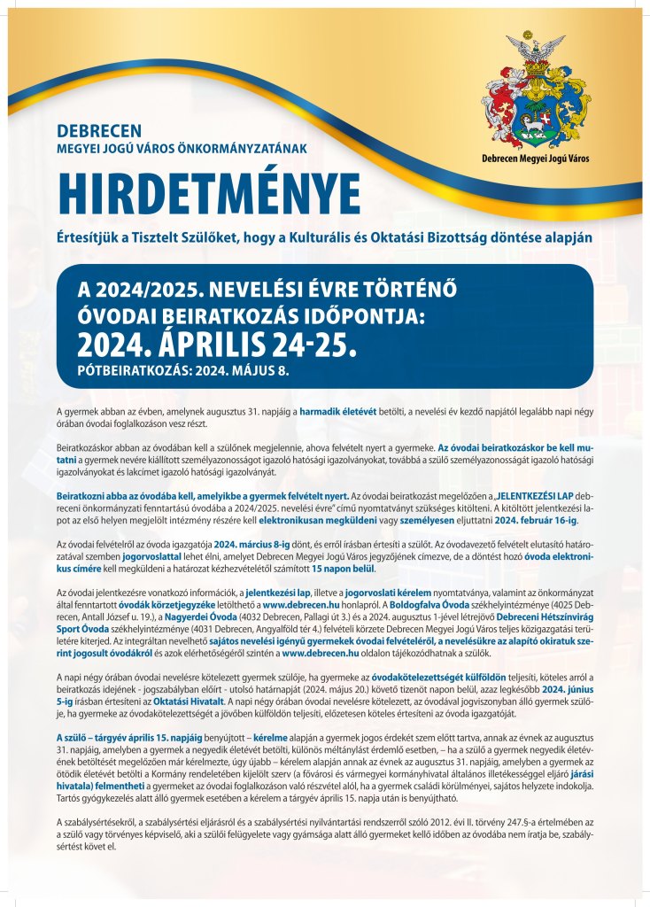 2024-2025 nevelési év Óvodai Beiratkozás